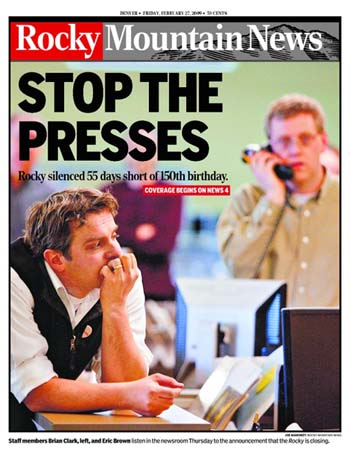 The front page headline in the final edition of the Rocky read “Goodbye, Colorado.”