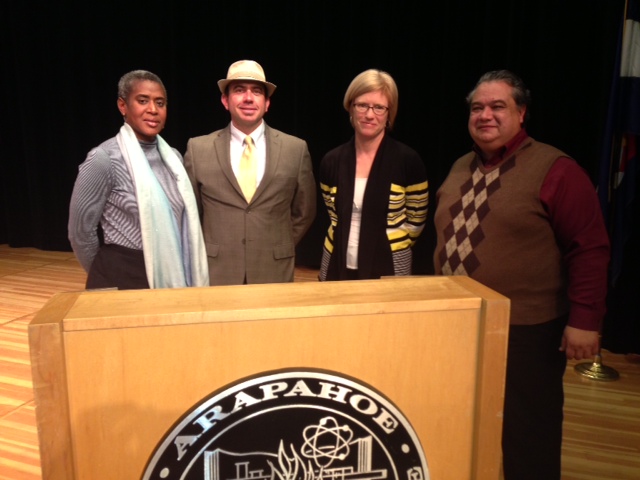 The Colorado Pro Chapter of the Society of Professional Journalists and Arapahoe Community College Journalism & Contemporary Media Studies sponsored a panel discussion on “Covering Race Relations in America” April 2 on the ACC campus in Littleton. Left to right: Donna Bryson of The Associated Press; Jamey Trotter, head of the ACC program; Joanna Bean. editor and vice president/content of The Gazette in Colorado Springs; Francisco Miraval, founder of Project Vision 21 and an ACC adjunct instructor. SPJ Colorado Pro president Ed Otte was the panel moderator. More than 100 students and faculty attended the program.