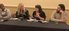 SPJ Colorado Pro Pro board member Cara DeGette was part of a panel Thursday night [Feb. 27, 2020] at the Denver Press Club on hyperlocal news sources. Panel members were, from left, Donna Bryson, reporter at Denverite; Patricia Calhoun, editor of Westword; DeGette; and David Sachs, reporter at Denverite. Other panel members included David Sabados of the fledgling Denver North Star; Sabrina Allie, also of the North Star; and Christy Steadman, an editor with Colorado Community Media.