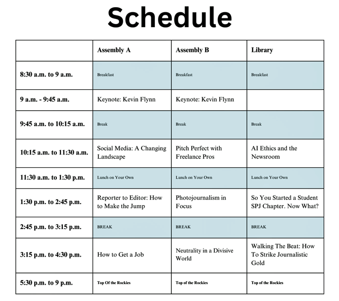 Fundamentals and the Future is open to journalism professionals, students and allies from Colorado, New Mexico, Utah and Wyoming. Discounted tickets are available to SPJ Colorado Pro members; CLICK HERE for details on joining Colorado SPJ.